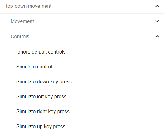 All actions, conditions and expressions are listed in the top-down movement reference page.