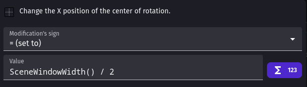 To center your text in the scene window, use the Center X position action with a value of SceneWindowWidth() / 2. This will place the center of your text object at the middle of your scene's width.